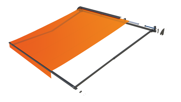 Zastosowanie łańcucha Flyera w konstrukcji ramion gwarantuje markizie niezawodną i bezpieczną pracę. Markizy o większej szerokości wyposażone są w podporę rury nawojowej, dzięki czemu tkanina napinana jest bardziej równomiernie.